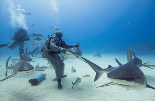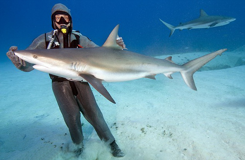 人们对鲨鱼有一个误解,鲨鱼大部分的种类都是不吃人的,因为鲨鱼在海洋中有一定的食谱,人类不是它们的食物,潜水员在水中如果不攻击鲨鱼,鲨鱼是不会吃他的。