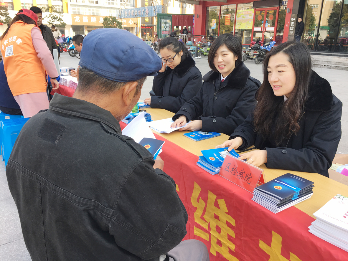 近日,区检察院在仙女镇南吴社区开展法制宣传活动,向社区居民发放图册资料、接受法律咨询,切实提高居民学法、知法、守法、用法意识。