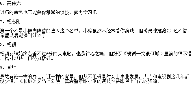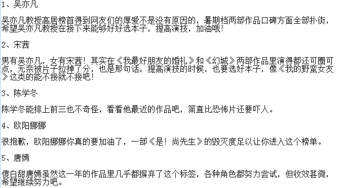 小鲜肉演技最差排行榜