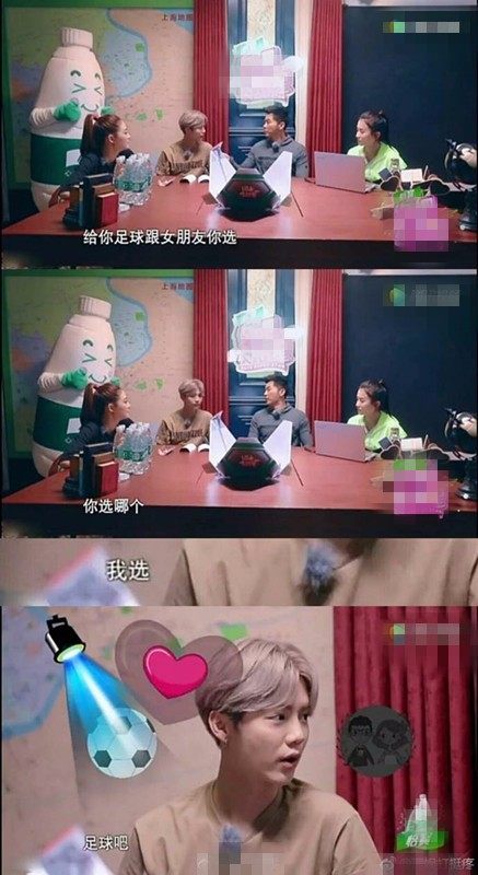 鹿晗在参加节目访问环节,被主持人问道足球的事情的时候,耿直的鹿晗回答:选足球也不会选择女友。