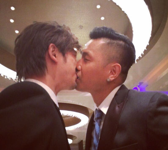 第一个,陈建州有很多与男性艺人激吻的照片,比如陈柏霖,罗志祥,蔡康永等,很多同性的朋友亲吻只是碰下嘴唇就好了,而陈建州是舌吻。