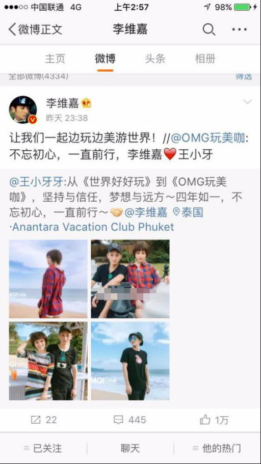 王小牙和李维嘉曾经多次爆出绯闻,两人作为湖南卫视《世界好好玩》的主持,经常搭档甜蜜出游,两人还曾经在微博上神默契、甜蜜互动,外界纷纷猜测两人肯定是日久生情。