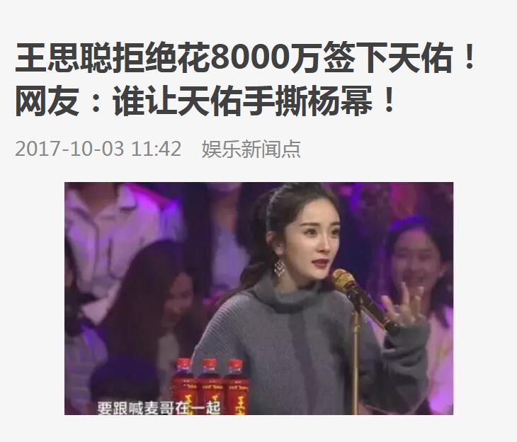王思聪大家都知道是富二代,并且把什么人都不放在眼里,但是在杨幂和天佑互怼的这样是上面他确实,绝对的支持杨幂的,其实杨幂虽说是说了一句“喊麦哥”,就让李天佑的粉丝怒骂杨幂,这样就开启了双方粉丝们的大骂战,其实每个喜欢自己的粉丝肯定是靠在自己偶像的面前。王思聪曾今对娱乐圈说过杨幂离婚他会和杨幂结婚,看见他对杨幂有多赏识,杨幂受怼他肯定帮助他怼天佑了,天佑在娱乐圈不紧得罪了杨幂、接着得罪了杨颖、金星,其实他也是为了蹭热度,这种人不能原谅,只能被娱乐圈淘汰。