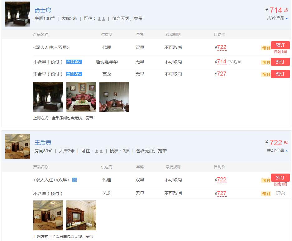 酒店中普通标间的价格目前在400元左右。爵士、公主、王子、皇后、国王这样的主题房一晚的售价在800左右,现在订购还有自助早餐和红酒赠送呢,具体大家可以查询各大预定酒店。