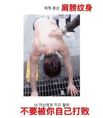 第二处是在右肩膀上的英文纹身:Don’t Be Defeated FromYourself。