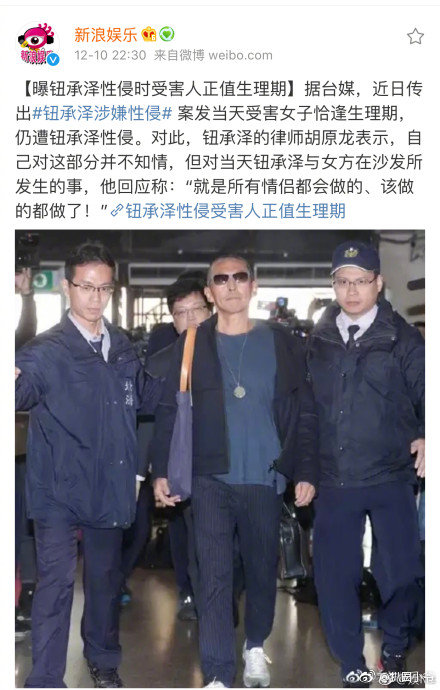 曾经小S说钮承泽是一个强奸犯,谁知道如今好像是证据确凿了,一条关于钮承泽性侵公司女职员的新闻,轰炸了整个娱乐圈。许多和钮承泽合作过的演员也都被观众挖出来,尤其是阮经天多次同钮承泽合作。