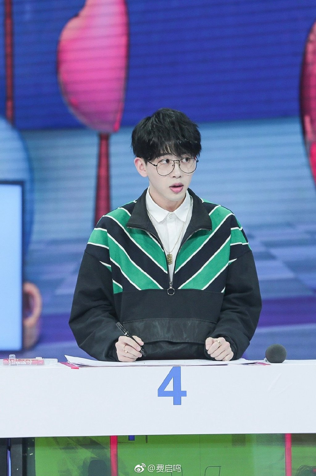 这样看上去,戴着眼镜的费启鸣确实比不戴眼镜时更有型一些,应该说大框的圆形眼镜对他的眼睛和脸型起到了一定的修饰效果,但是即使不戴眼镜,费启鸣也不丑,还是很阳光帅气的大男孩。