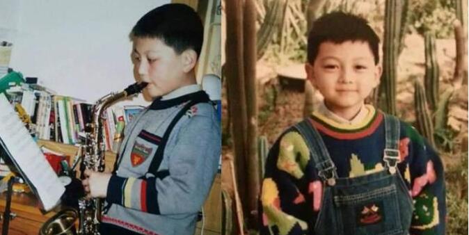 看张晓谦小时候穿的衣服就比较潮,花毛衣背带裤,小小年纪就开始学吹萨克斯,看来父母应该是花费了不少心思来培养他的。