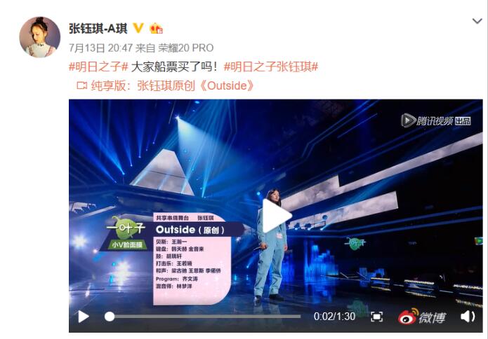 张钰琪现状很好,经过一次发挥不佳之后,很快就收拾了心情,准备下一场上台了,一首原创歌曲《Outside》唱的观众心动不已。点赞评论也是一水的夸奖和超好听的!所以张钰琪这是后面都会比较顺利了。