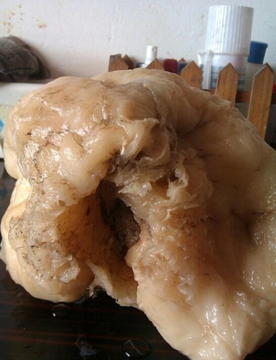 野生太岁是肉灵芝,整体看上去就是在土里面的肉球,看上去非常有弹性,在土里、水里面都不会腐烂,而且据说会吞噬水里面的细菌。