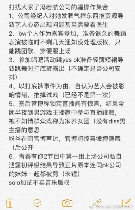 据悉,冯若航现在所在的公司叫圣元互娱,主营业务有艺人经纪、音乐制作和营销宣传,目前微博上有网友总结了圣元互娱的一些“骚操作”大家可以看看: