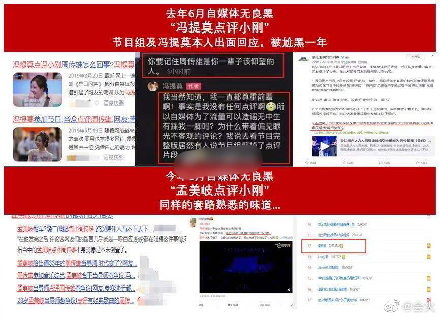 从目前已有的证据来看,孟美岐确实没有点评周传雄,在节目上也表现出来了对前辈的尊重,这次事件应该是黑粉的恶意攻击,除了孟美岐,冯提莫也曾经遭遇过一毛一样的“抹黑”事件,而且当年的对象也是周传雄老师!