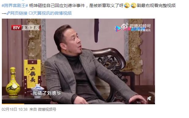 杨坤刘德华事件实际上是一个断章取义的误会。杨坤在《跨界喜剧王》的舞台上用喜剧表演回应刘德华事件,提出当年说的是“华仔作为影星比歌手的身份更高。”却被有心人断章取义的“截了一道”,违背了本意,说杨坤骂刘德华没有唱功,从此给自己招了一堆黑粉!
