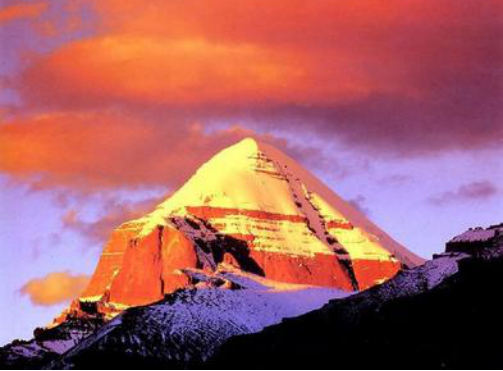 冈仁波齐山形如橄榄,直插云霄,峰顶如七彩圆冠,周围如同八瓣莲花四面环绕,山身如同水晶砌成。东边的万宝山,传说是释迦牟尼脚踏过的山峰;西边是度母山;南边是智慧女神峰;北边是护法神大山。每年都有许许许多多的转山朝拜者,他们来自藏地、内地、印度和尼泊尔等国。岗仁波齐是藏传佛教、印度教和苯教等教的朝圣中心,佛教界的“须弥山和世界的中心,素有“神山之王”的美誉。