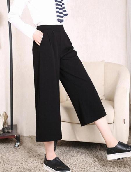 腿粗的MM有救了,这款时尚阔腿裤很好的修饰你的腿型,掩盖你的大腿肉肉,让你穿出好身材,简约的七分裤露出你的纤细小腿很好的拉长腿部线条,让你轻松秀出你的大长腿。