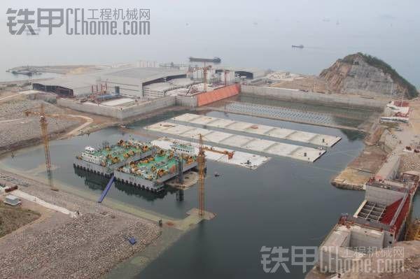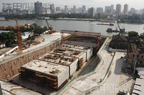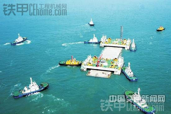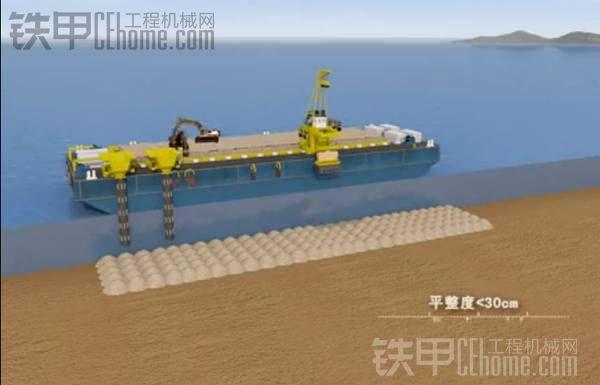 由于海底表层都是淤泥,沉管沉之前必须先把基础做好,用专用设备把表层的淤泥清干净