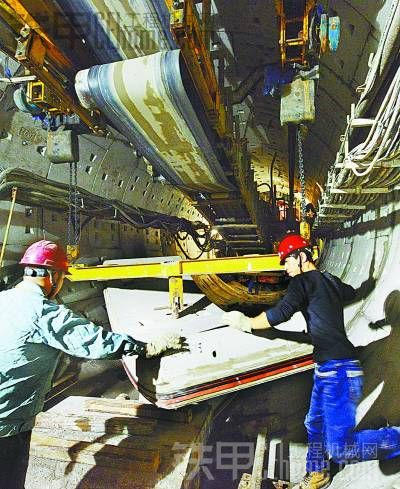 当然,每掘进一点距离,工人就要把管片安装好,支撑土体,保证安全。如下: