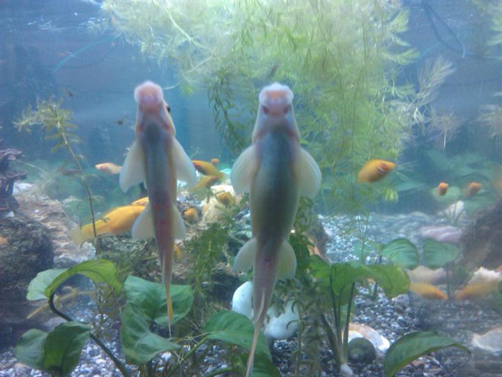 6.清苔鼠、黄金清苔鼠:吸壁鱼类的一种,为清藻鱼类中第二大的,可长到10~15cm长,且经过多位鱼友证实,只要有饲料餵的够多,清苔鼠会去抢食饲料,而且久了之后会有惯性,从此只会等饲料,不会清藻类,所以并不建议使用清苔鼠,价格10~20。