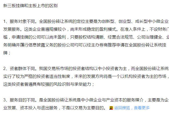 新三板针对的是中小企业,而主板上市针对的是大中型企业,由于两者的服务对象就不同,因此在各项制度方面就有很大的区别,那么两者的区别都是有哪些?今天就给大家介绍一下:
