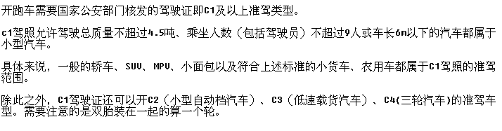 跑车是不需要专门另考驾照的,只要是有c1驾驶证就能开跑车的。