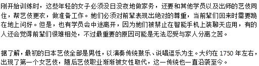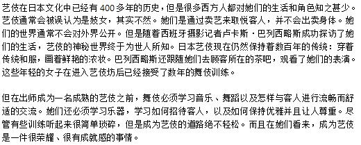 日本艺伎并不像是人们想象的那样,她们不是妓女,她们卖艺不卖身的,高雅一点说,她们是艺人,靠自身的才艺来赚钱。今天我们来详细了解一下艺伎的生活。