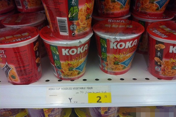 这是一盒桶装方便面的价格,折算后约五元,和国内的价格差不多。