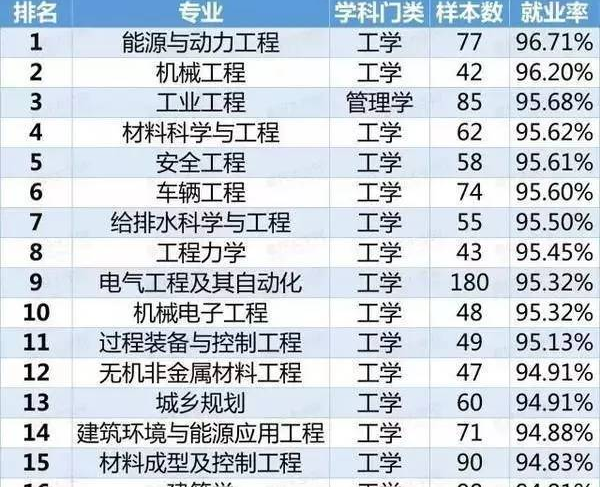2017年就业率前十的专业,能源动力,机械工程的就业率能达到96%。计算机,信息技术类,建筑类的就业依然很热门