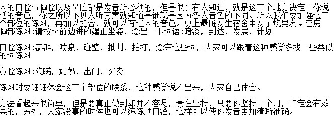 相信大家都见识过有的人装出来的说话声音会非常的好听,悦耳,而自己却没有那么好听的声音,其实只要经过练习大家都可以拥有好的声音