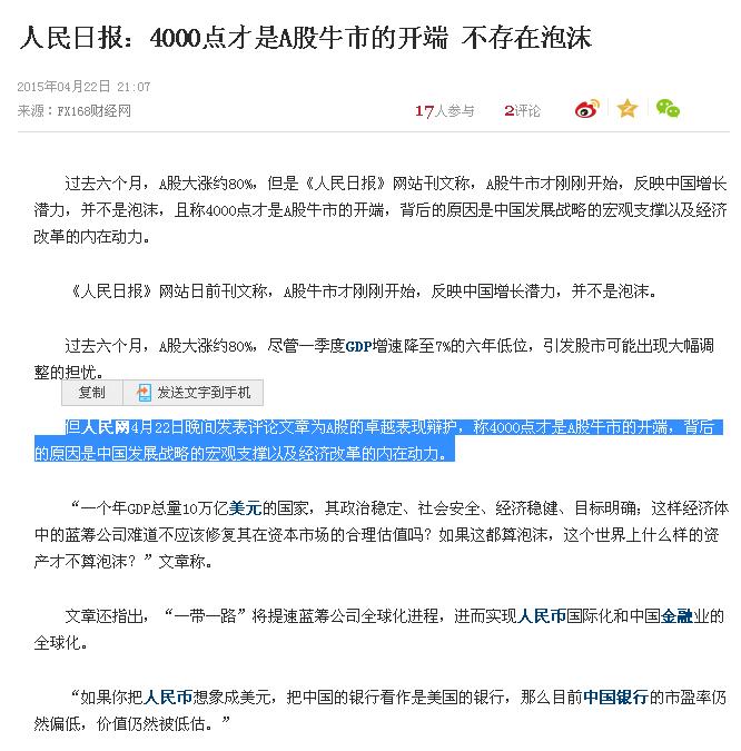 其实我们国家的经济在全世界范围看都是非常棒的,但是我们的股市却跟经济非常的不相匹配,所以我们一定要坚定的看多我们的股市,4000点是牛市的起点在小编看来,这不光是对我们国家经济、社会前景的看好,更重要的是做多的气氛一旦来了,就会引起散户们都来做多,从而推动股市继续走高。
