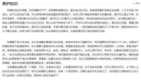 非洲迷你刺猬的对环境没有严格的要求,适应能力很强。但是由于非洲迷你刺猬的胆子比较小,喜欢安静的场合,有昼伏夜出的生活习性。养非洲迷你刺猬前要准备一个笼子或者是纸箱、木箱之类的作为非洲迷你刺猬的家,并且铺上干净的草或者枯树叶之类的。非洲迷你刺猬每天需要睡眠十个小时以上,喜欢吃蟋蟀、面包虫或者专门的刺猬饲料都行。