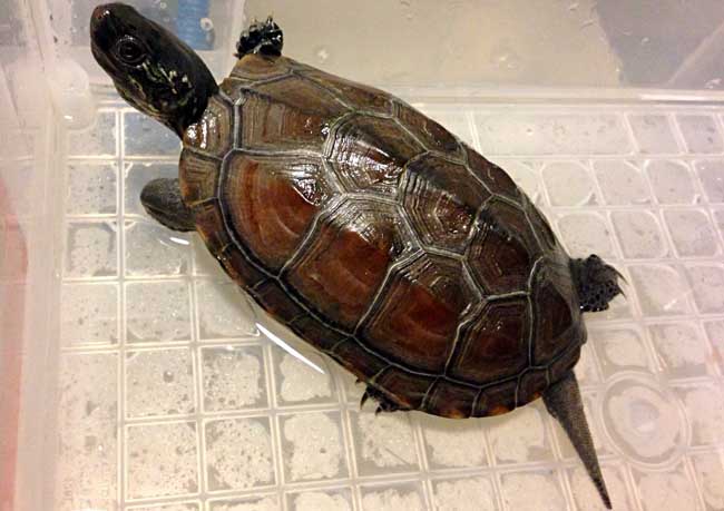 中华草龟能长多大呢,中华草龟母的能长三斤左右,长度能长28cm,公的比母的要小些,体重能长到一斤多,体长15cm左右。野生的草龟因为环境的限制比如要冬眠甚至缺乏食物,体型会更小。