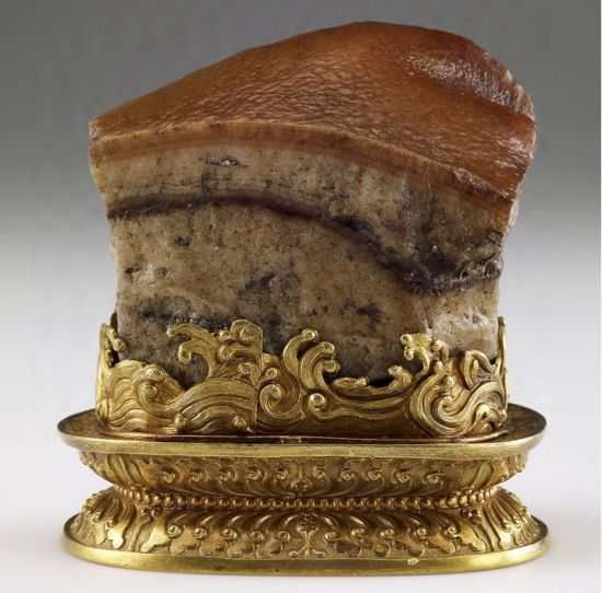 1、肉形石。看起来想一块带肉皮的肥瘦相间的五花肉,但这是一块天然的石头,肉的形状是经过人的鬼斧神工制成。