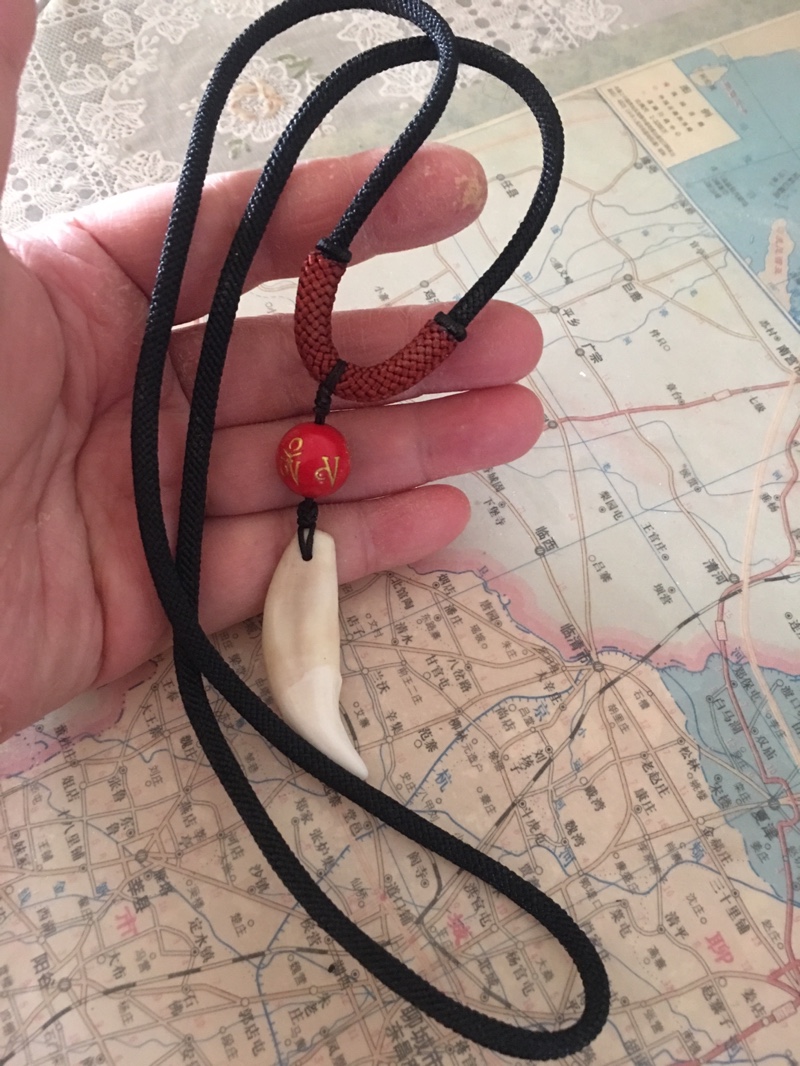 传说中,狗可以驱鬼辟邪,尤其是黑狗,而狗牙具有安神护身的作用。狗的嗅觉很强,不只是我们能了解的味道,甚至于一些人类记忆中不存在的味道他们也能闻到(例如鬼怪的味道),大家都知道,有许多的颜色狗是看不到的,但有许多人看不到的东西,狗也许是能看到的。在一些农村里,一般有人家杀狗的时候,村民就会去要狗牙,把狗牙穿成项链或手链戴在身上,用来趋吉辟邪。