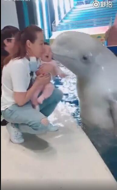 白鲸尤其喜欢小孩子,大概就是觉得小孩子看起来比较好玩,动作表情等比较丰富,能娱乐到白鲸。要说白鲸这智商都到了三岁孩童一般,那基本就跟家里的狗子差不多了呀。