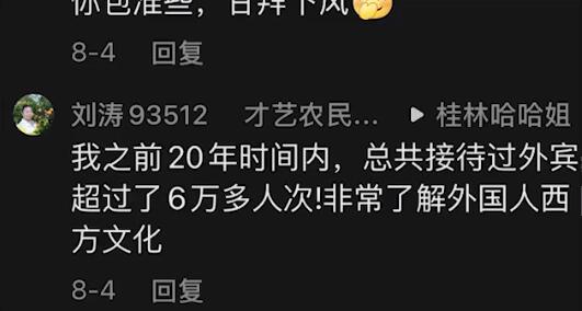 刘涛的英语虽然不标准,但我们绝对不能小看他,他曾在回复中说自己是桂林阳朔地区本土明星,还是当地最有名的英语老师,他教过的学生个个100分,还经常登上当地电视台的新闻节目,在之前的20年时间,还接待过超6万的外国宾客呢。